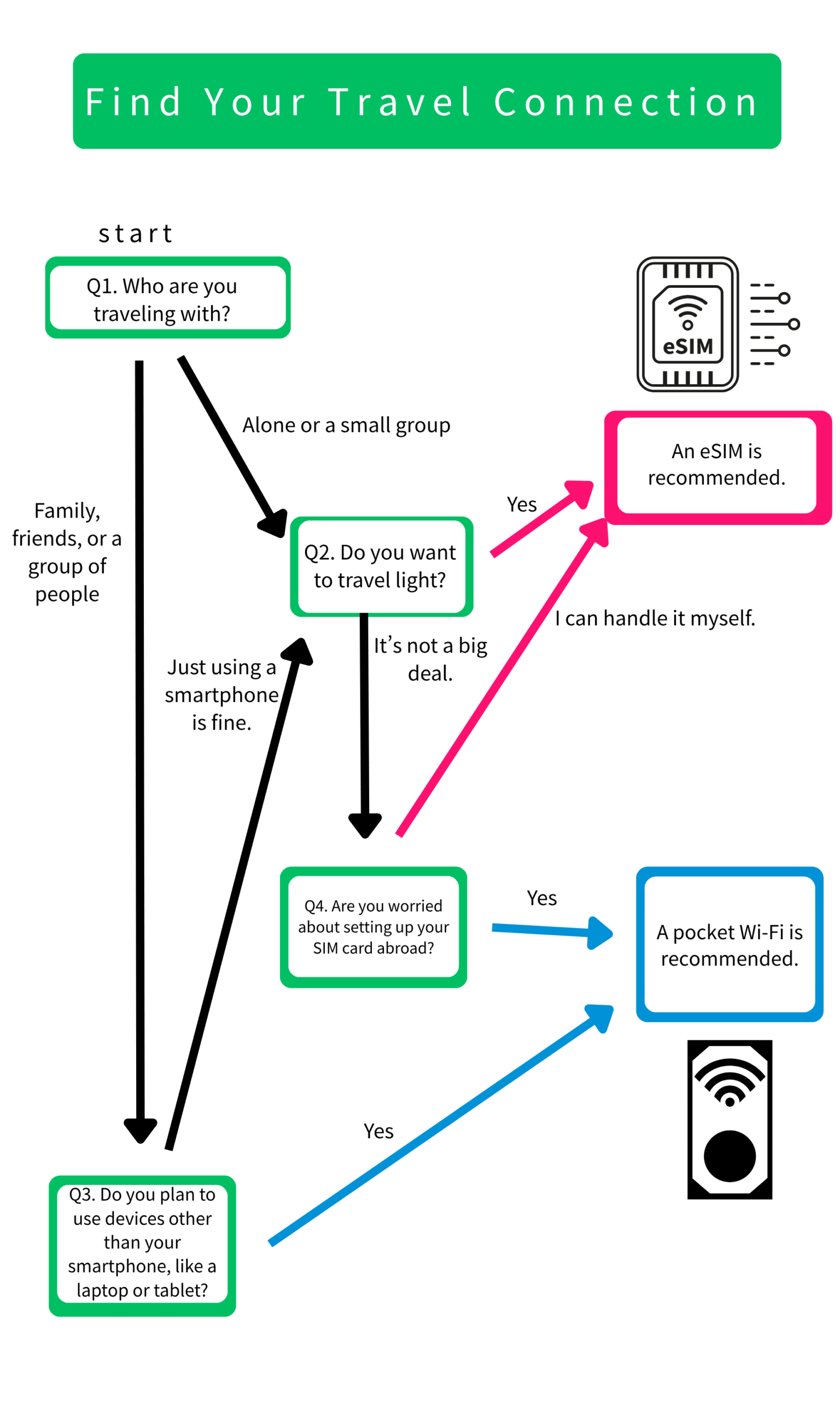 Check the guide below to see which option—eSIM or pocket Wi-Fi—is the best fit for you!