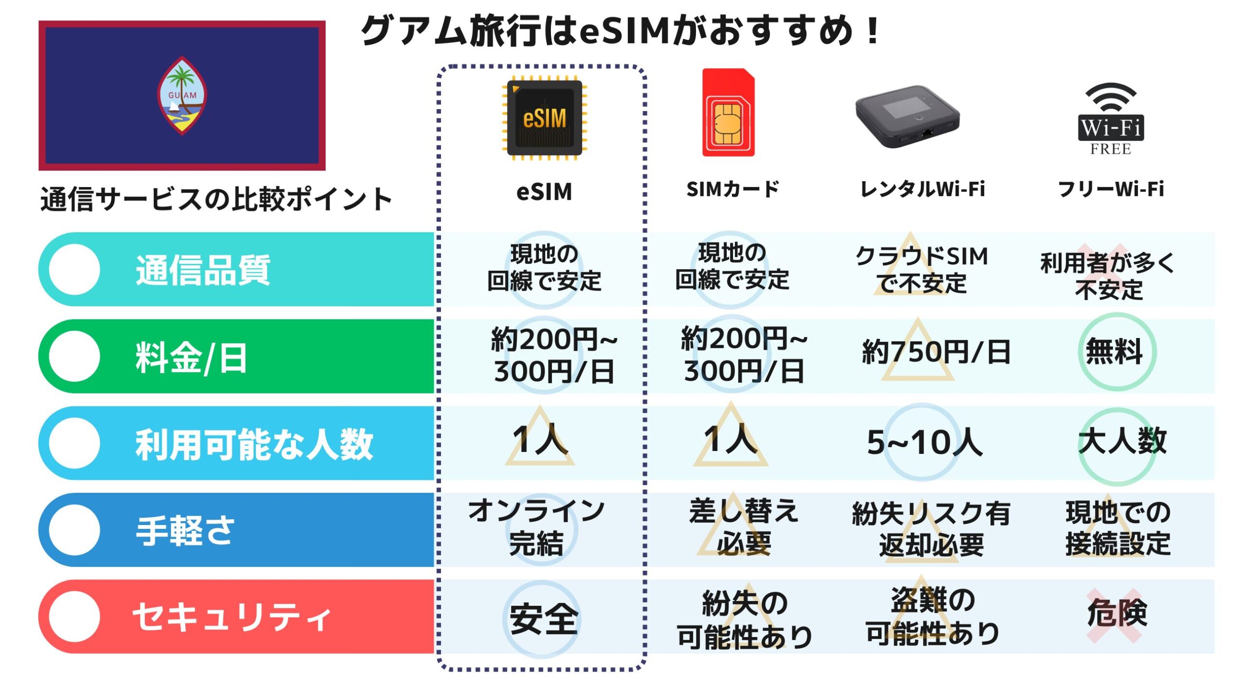 | グアム旅行におすすめのeSIM5選 | |||||