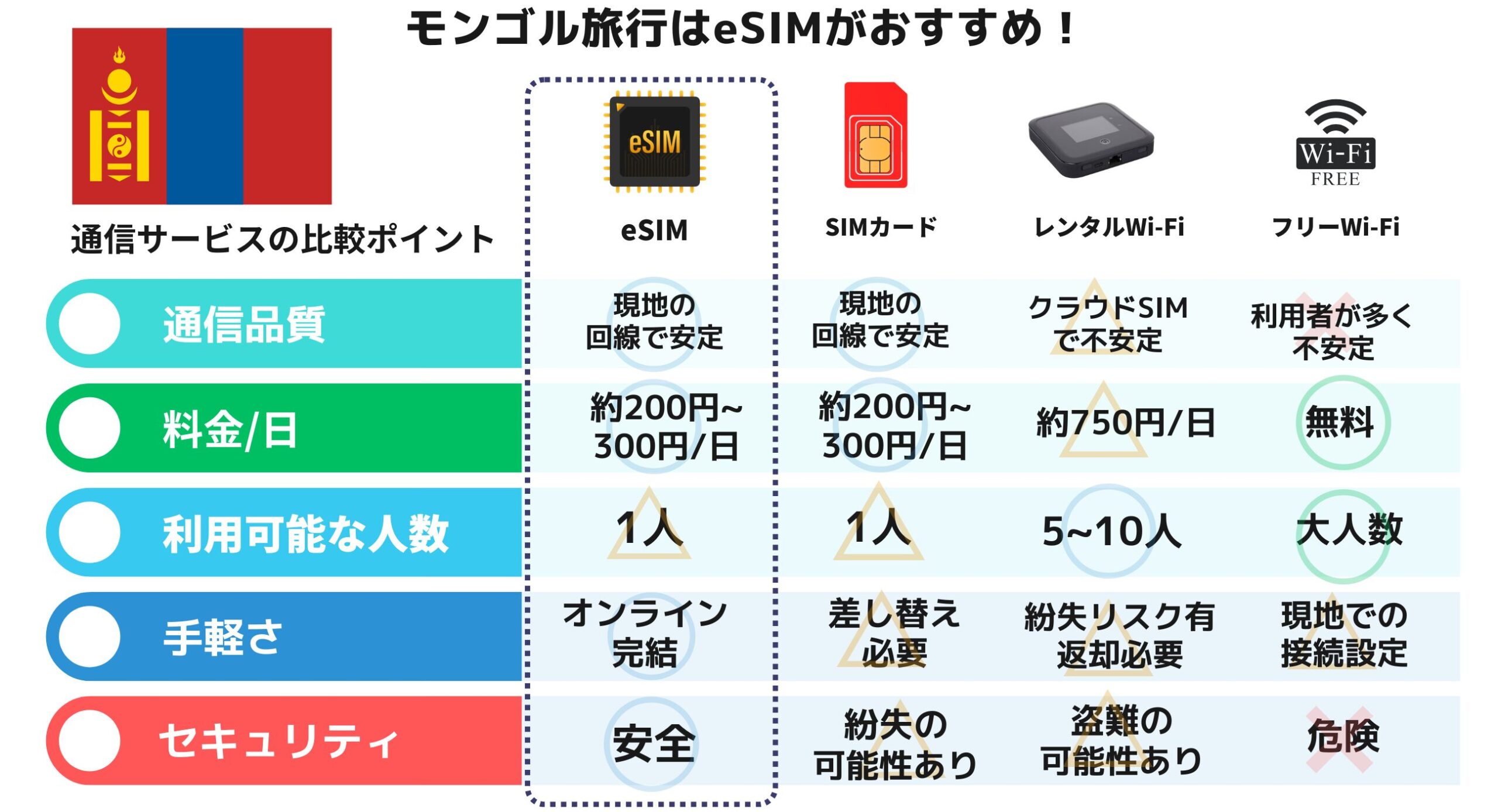 | モンゴル旅行におすすめのeSIM5選 | |||||