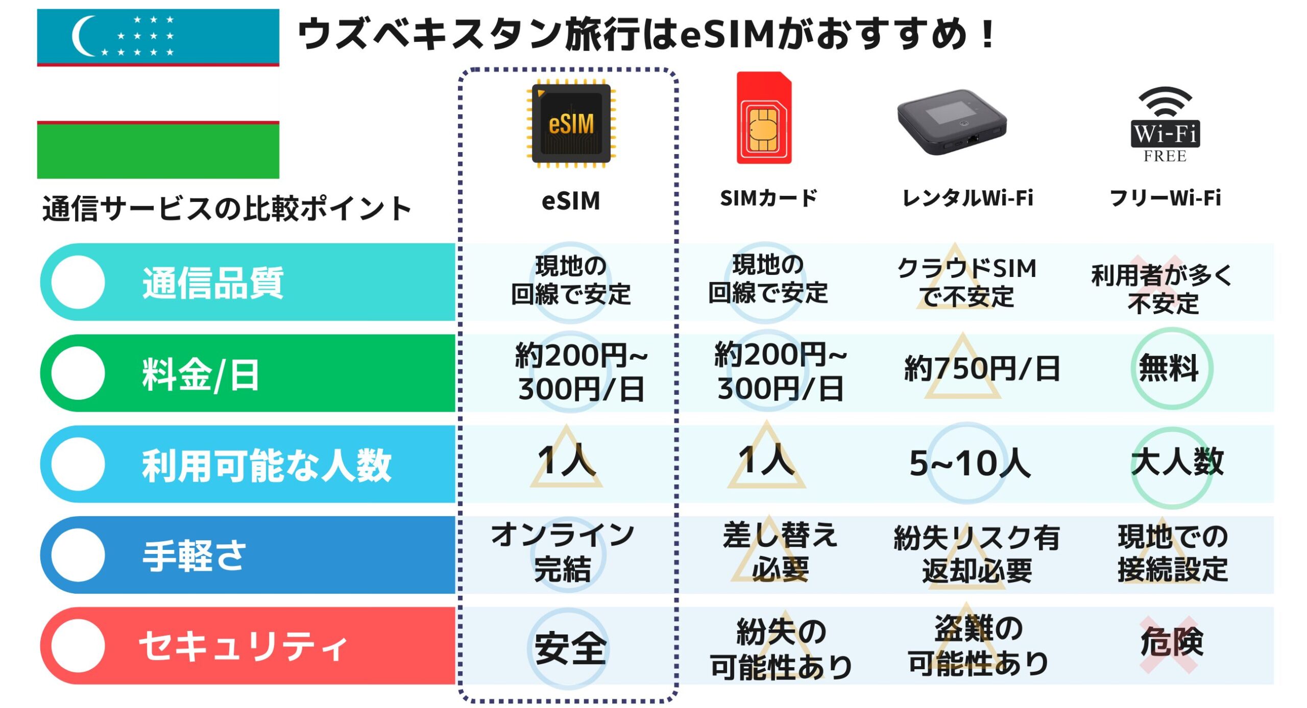 | ウズベキスタン旅行におすすめのeSIM5選 | |||||