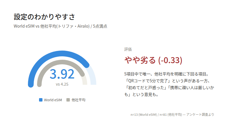 設定に関する口コミ・評判 | 他社平均と比べてもやや劣る結果に